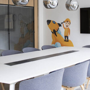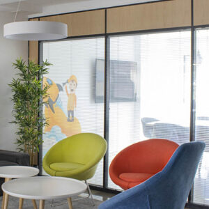 - Zona de office (mesa, sillas, nevera, microondas, cafetera, agua osmotizada fría y temperatura ambiente)